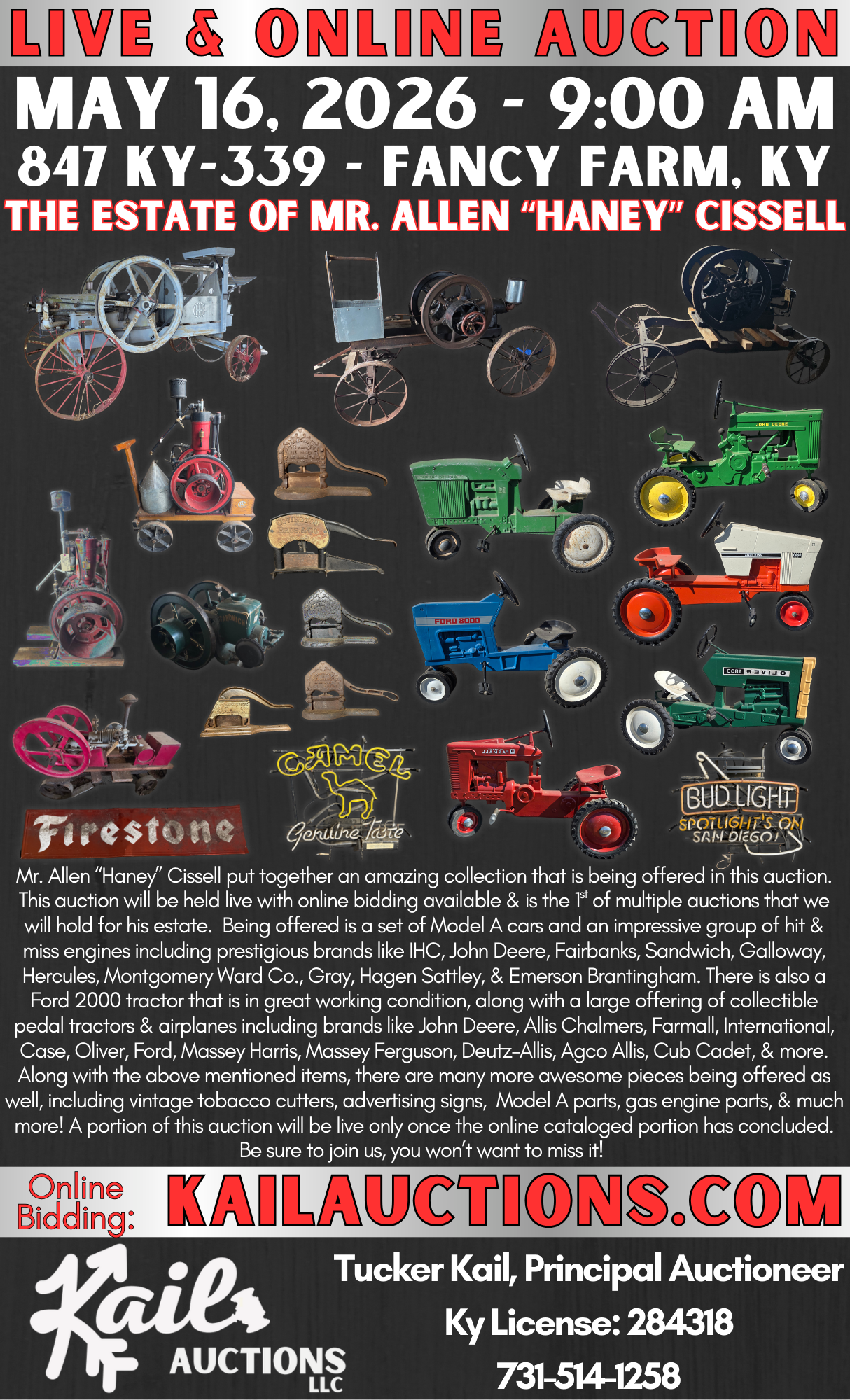 *Bidding is open now, ONLINE and will close during the live auction on May 16th, 2026 beginning at 9:00AM CST! There will be simulcast online bidding during the live auction on May 16th.